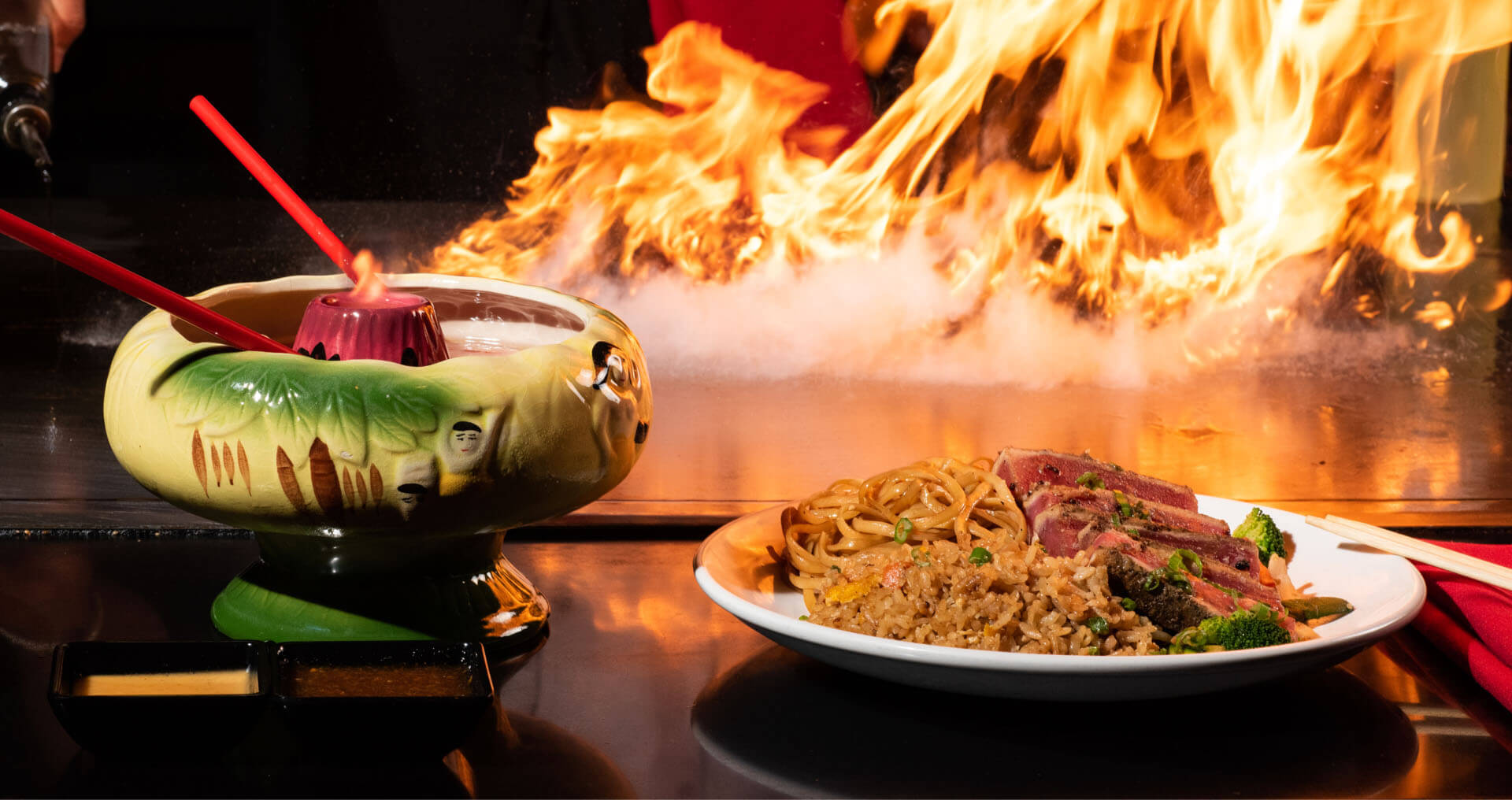 Teriyaki Chicken, Filet Mignon*, Shrimp, Scallops & Lobster Tail